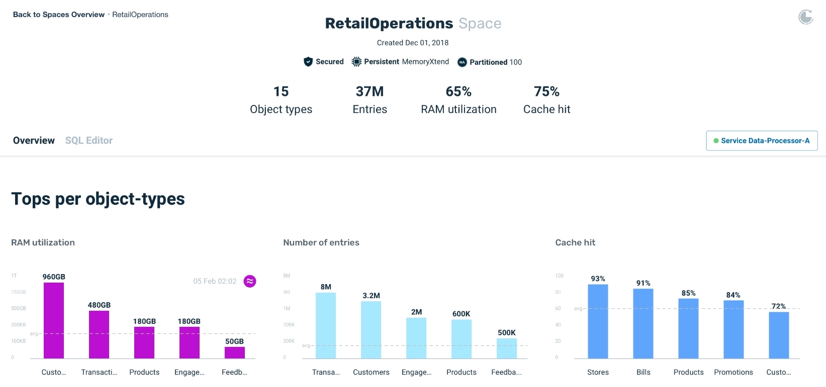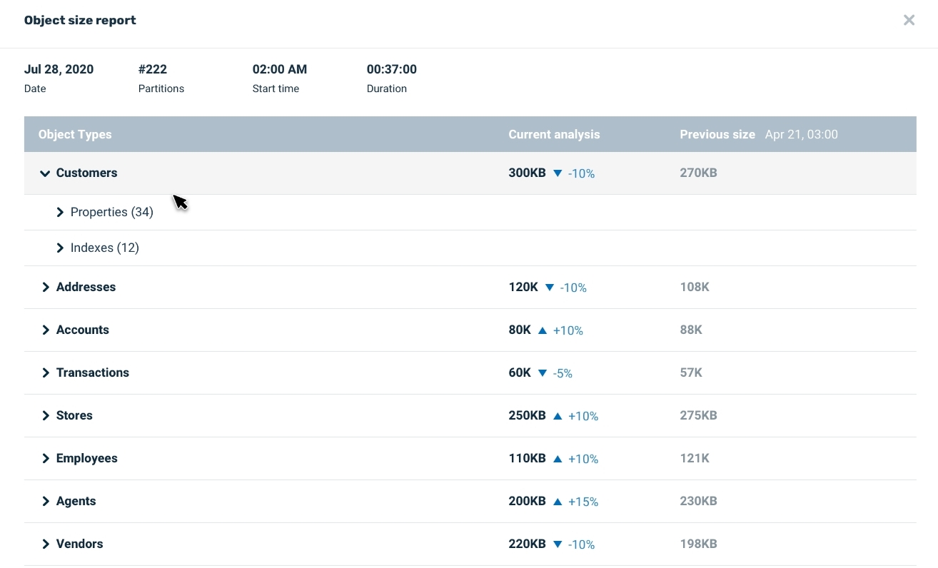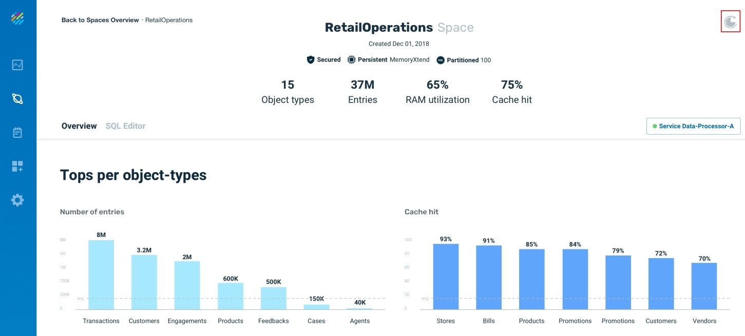 Administrators can use object analysis on a daily or weekly basis, to analyze system health and to determine the memory usage for the entire Space Object or for specific object types. It is possible to analyze the data size at the partition level, to identify cases where a specific partition is overloaded with data that could potentially impact its performance.