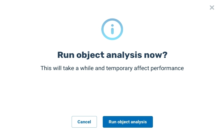 Because the Object analysis process may consume considerable system resources, it is recommended to run the analysis at an off-peak time, when the system is experiencing relatively low usage.