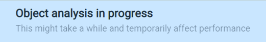 Because the Object Analysis process can take some time, a confirmation screen asks if you want to continue: