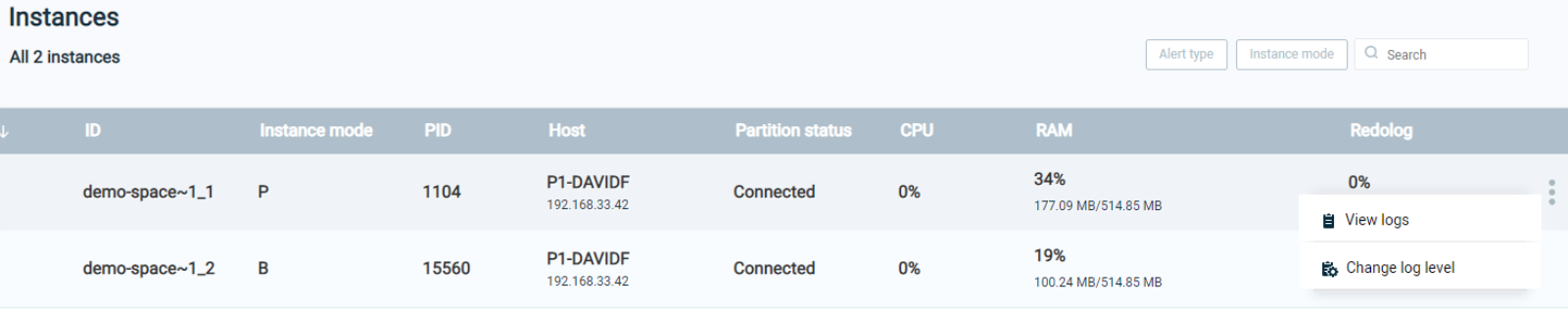 To view the log file for a partition, click on View Logs on the menu that appears when hovering over the three dots on one of the partition instances: