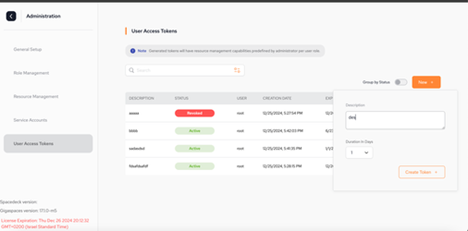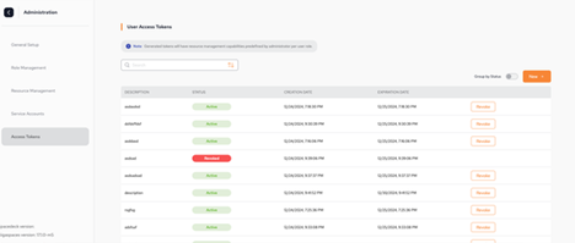 You can create new tokens, revoke active tokens, and delete expired tokens.